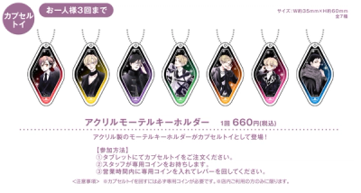 Acrylic motel key holders available as capsule toys! Size: approx. W35mm × H60mm, 7 varieties total