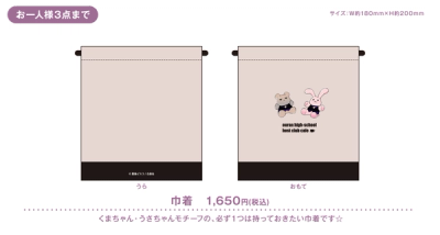 A must-have drawstring bag featuring Kuma-chan (bear) and Usa-chan (rabbit) motifs☆ Size: approx. W180mm × H200mm © Bisco Hatori / Hakusensha