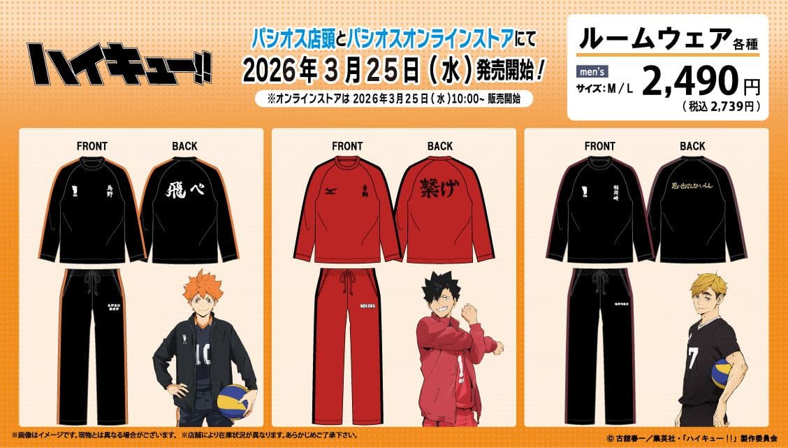 Haikyu!! × Pasios Room Wear Arrives from March 25th!